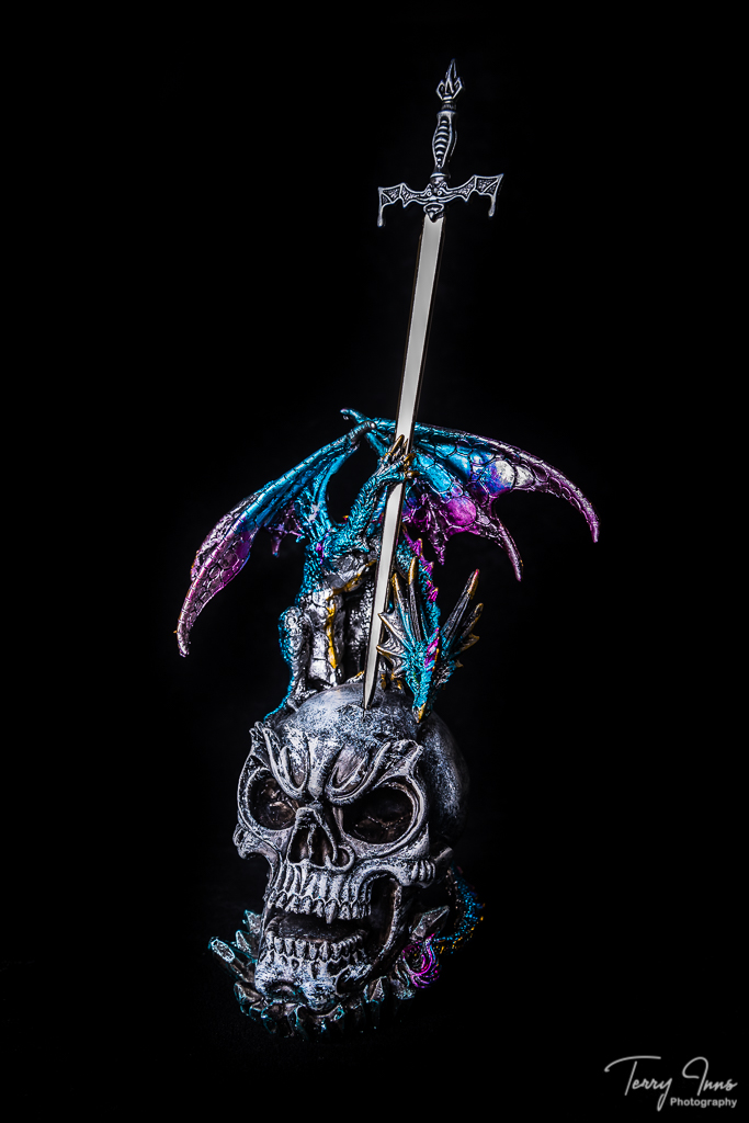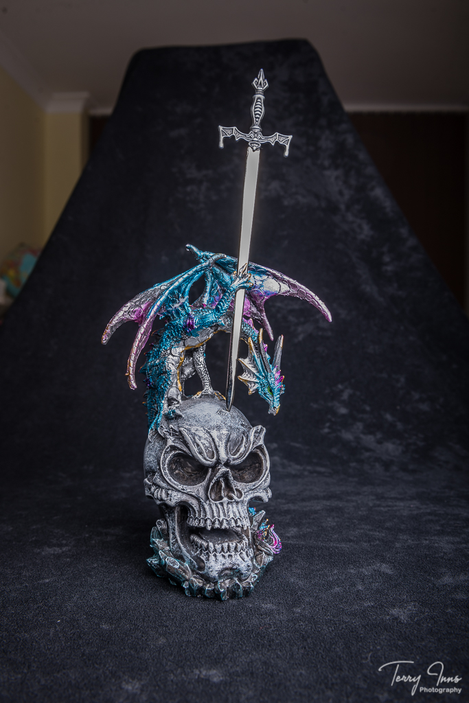 Taken at 1/250 sec at f8 and ISO64, this shot was taken against a black backdrop with a softbox flash. You can see my set up below.