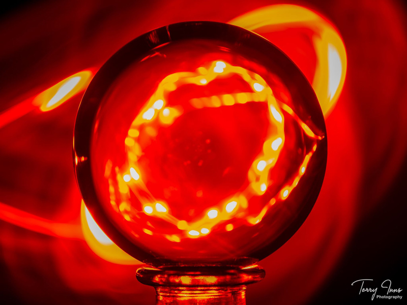 This is one of my early projects using a Lensball, basically a crystal ball through which you can take some great photographs, or like in this example, create some truly captivating effects. This project was one taken indoor, with a black cloth a bottle to sit the Lensball on top of and a disco light. Using a long exposure the camera was able to capture some really cool effects.