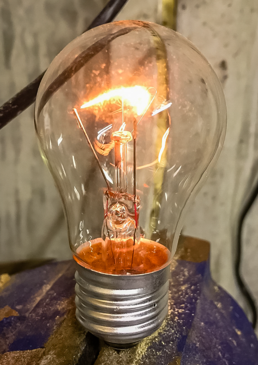 The next challenge was in getting just the right settings for my camera to let in just enough light to pick up the amber glow of the filament while not picking up too much of the background or reflection. As you can see from the image below, my first few attempts did end up showing a little too much of the clutter behind me.