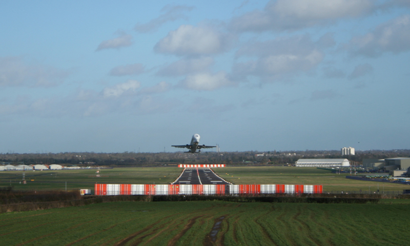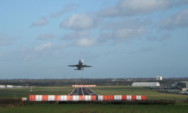 This shot was taken from the plane spotters cafe on the edge of the airfield through a wire mesh security fence, just enough angle to be able to fit the whole wingspan into the frame. The blue sky and airfield buildings in the background add context to this shot for me.
